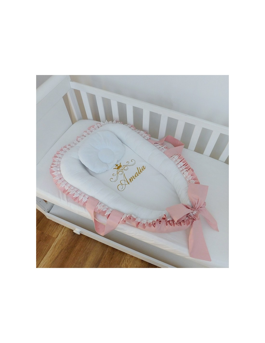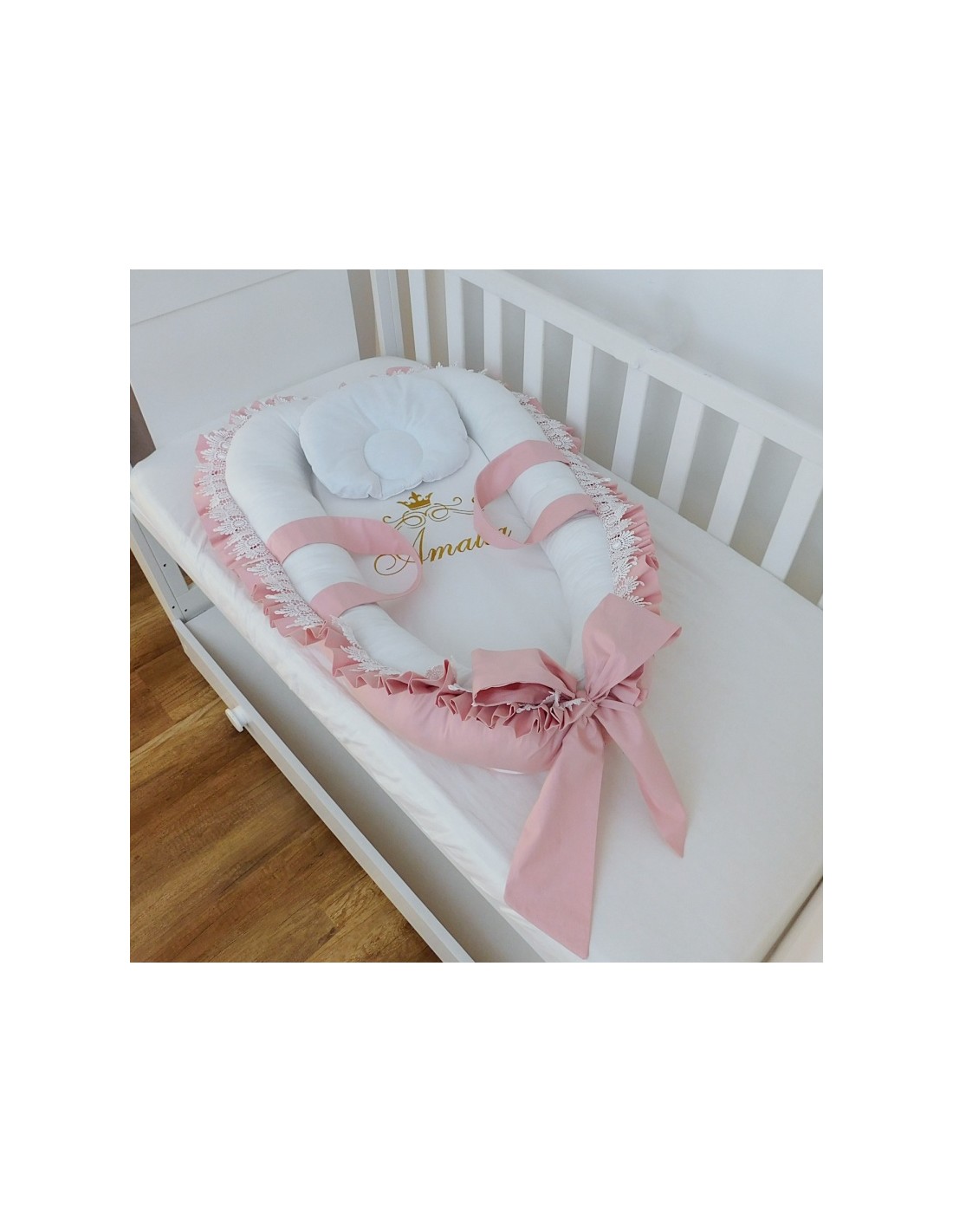 Baby Nest personalizat- Lace Powder Pink