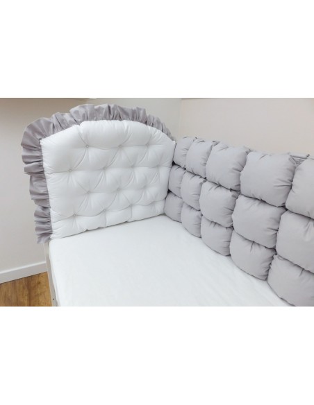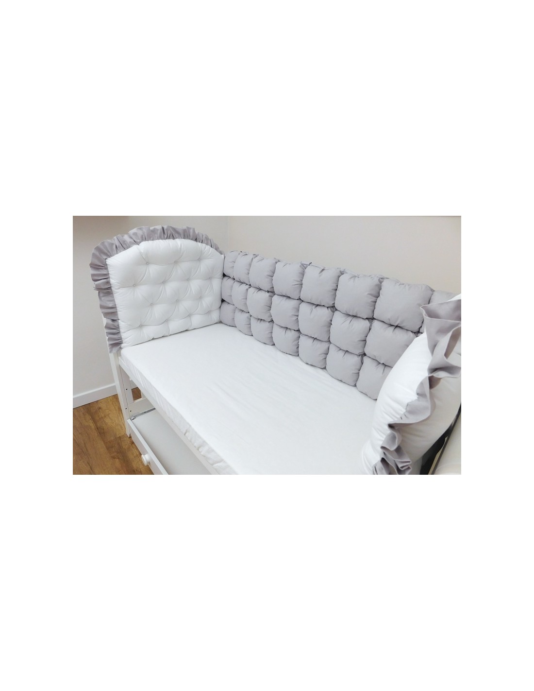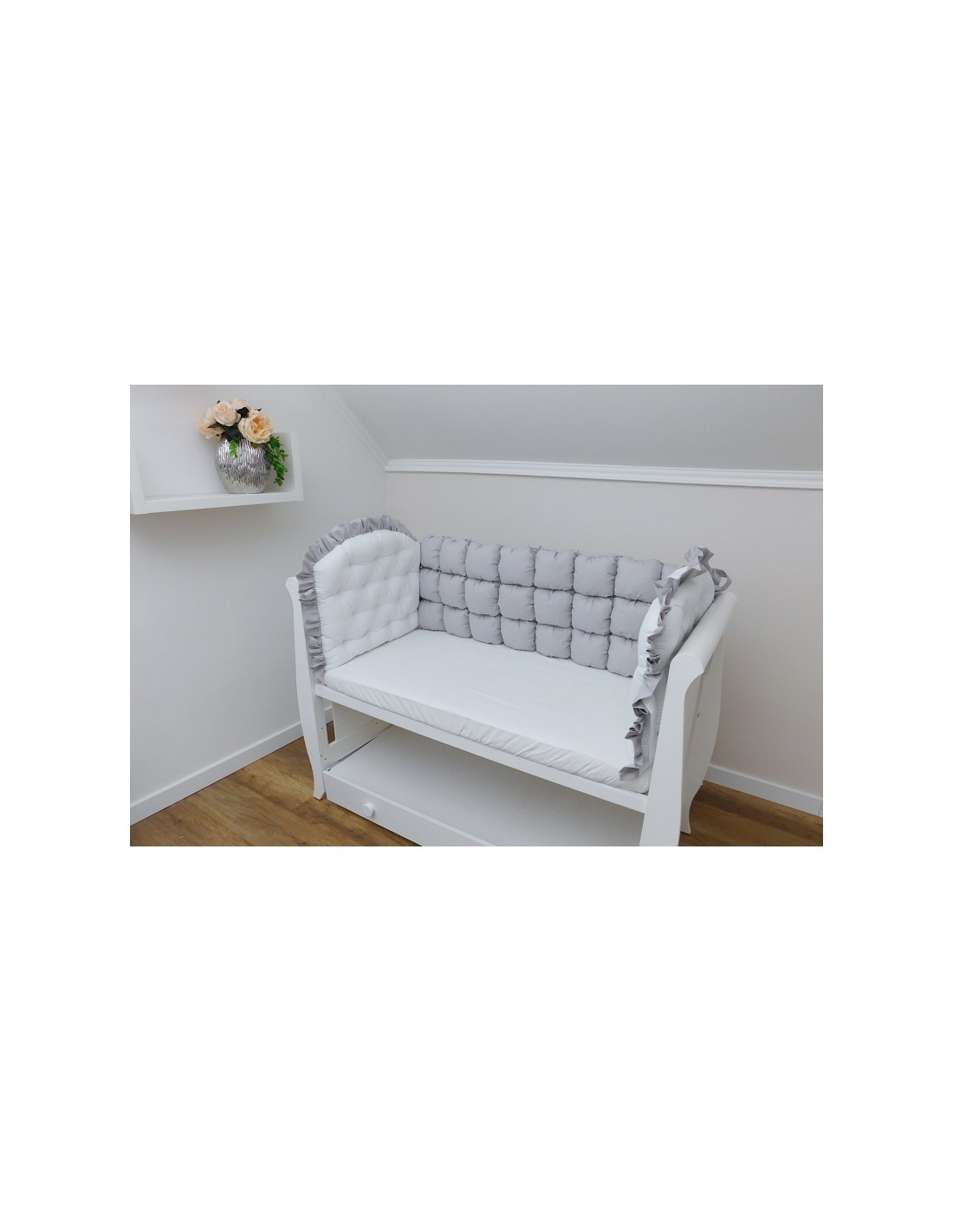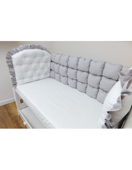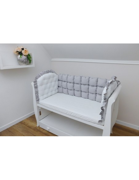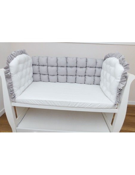 Setul include cele trei protectii care acopera trei laterale ale patutului. Daca doresti sa accesorizezi setul de aparatori cu cearceaful cu volanase te rugam sa apesi aici!