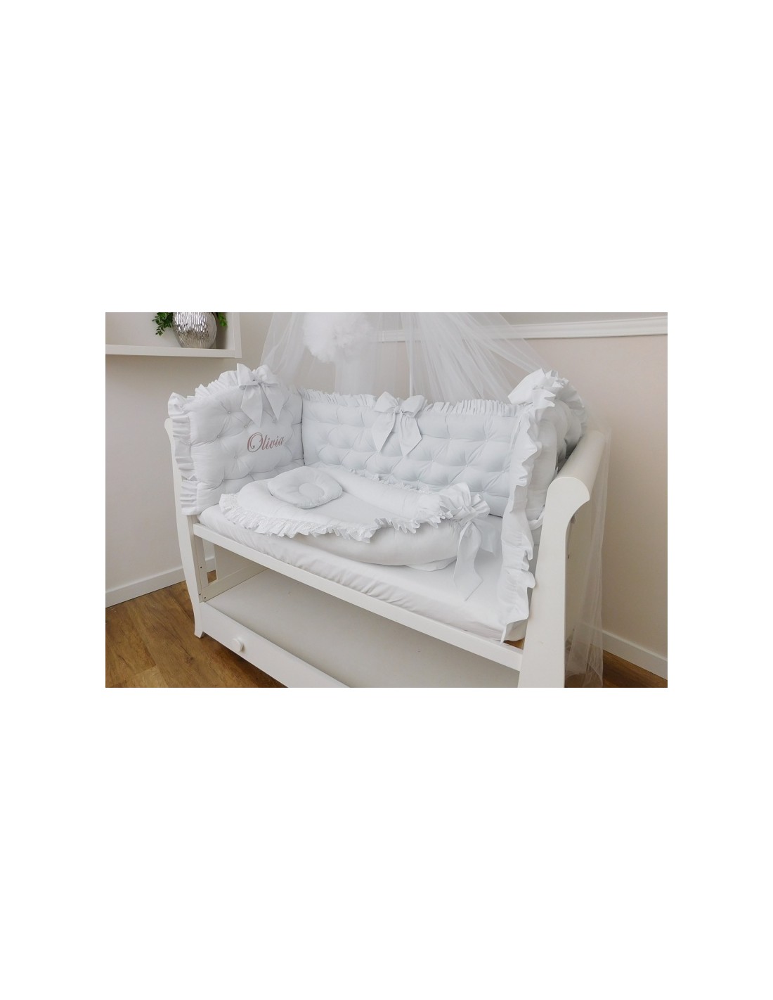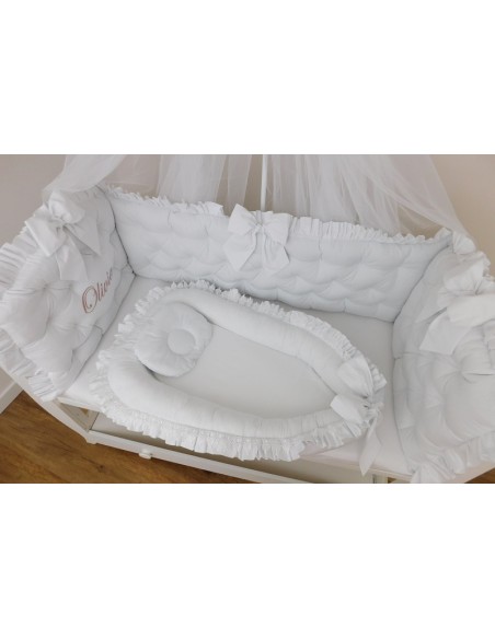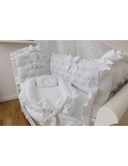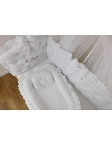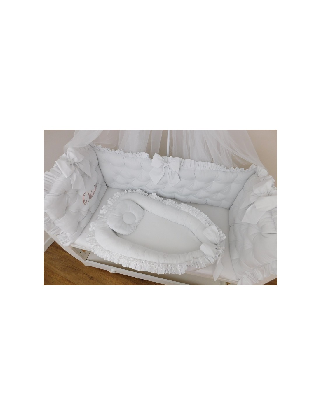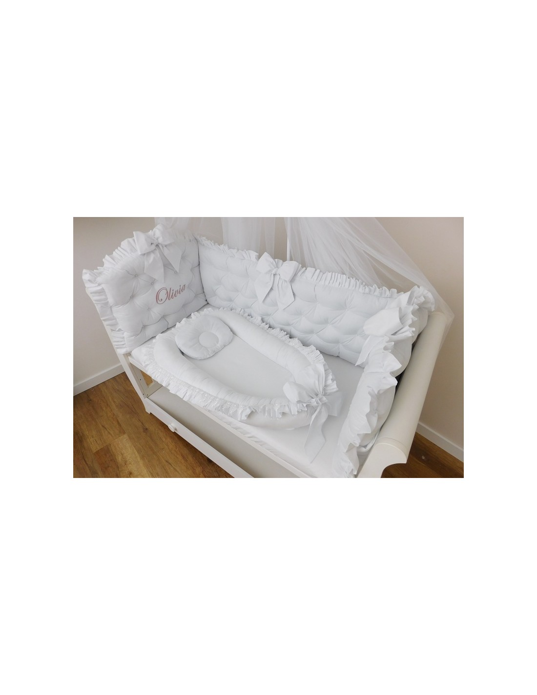Setul de aparatori, baby nest, cearceaf si baldachin este tot ce ai nevoie pentru a creea o ambianta placuta in camera bebelusului tau.
