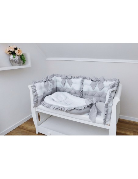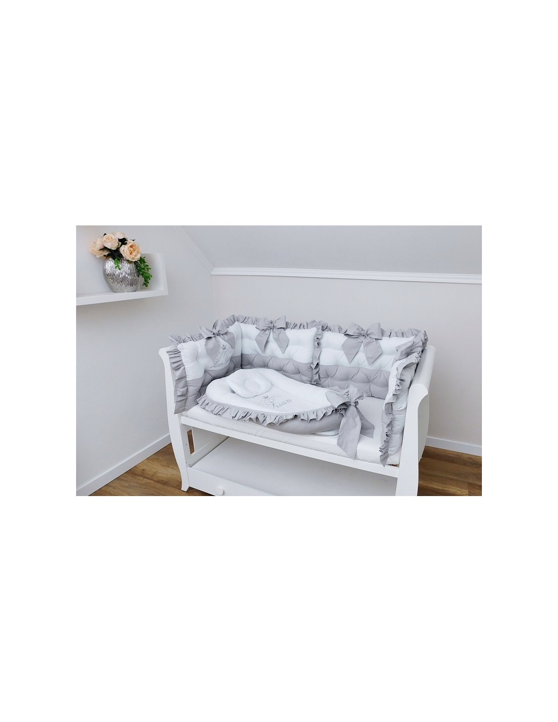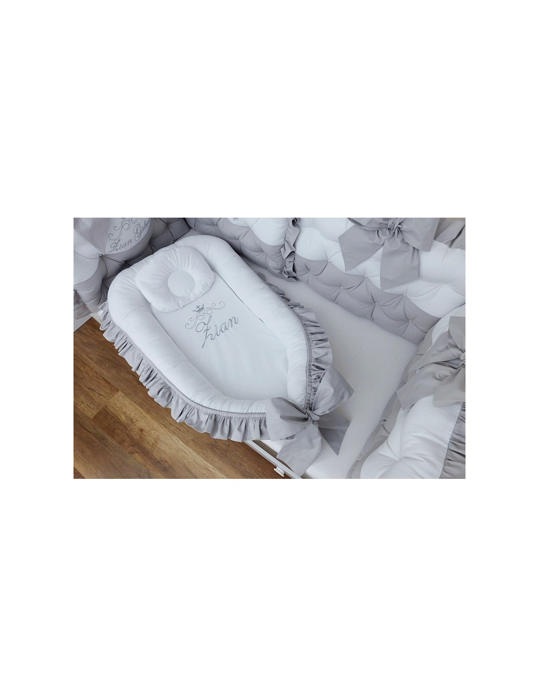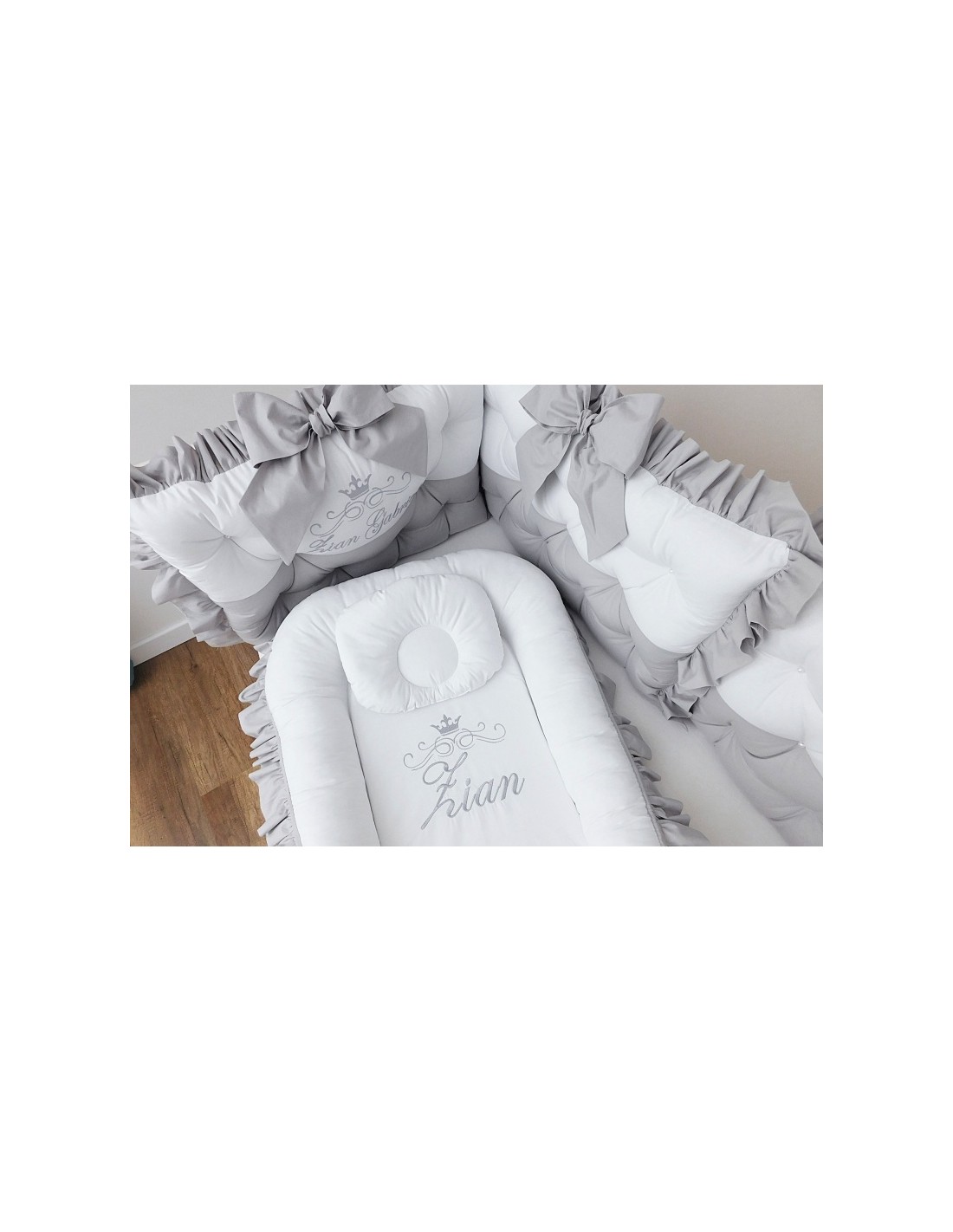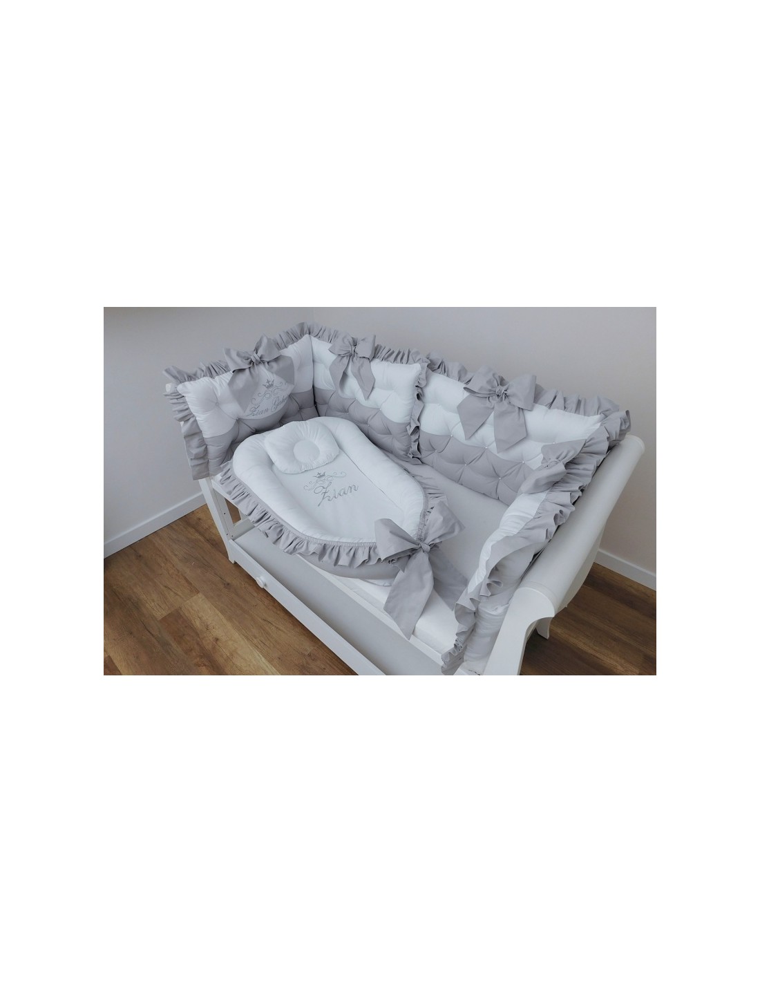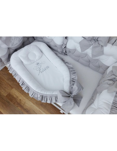 Confectionate din 100% bumbac, atat setul de aparatori cat si baby nestul au o umplutura siliconizata hipoalergenica, cea ce ofera durabilitate produselor si permite spalarea acestora la o temperatura de 30 de grade in masina de spalat rufe.