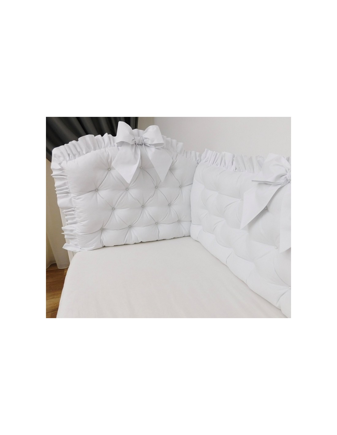 Design unic, realizat din 100% bumbac moale, setul de aparatori are o umplutura de vatelina liniara si puf siliconizat hipoalergenic.